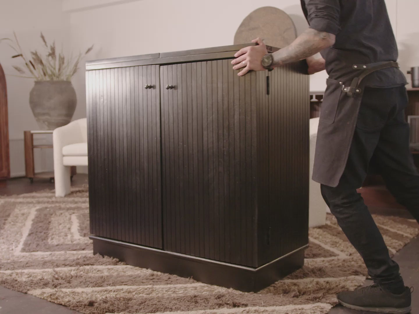Despite its generous storage space, the Queens PRO Home Bar Cabinet maintains a sleek and compact profile when closed, making it easy to place in any room.